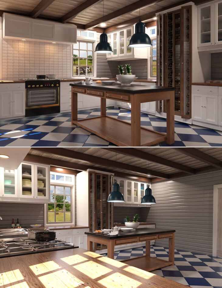 Here's our take on a kitchen in the Hamptons. It looks luxurious but very homey. The Hamptons is always a great idea when you're visiting New York because you're in New York, but it doesn't have the feel of the big city. The Hampton Kitchen is cozy but very expensive, so get cooking today!
