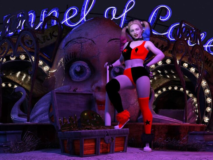 Here is the Harley Quinn Out fit from the recent DCUniverse animated series for the Genesis 8 Female.