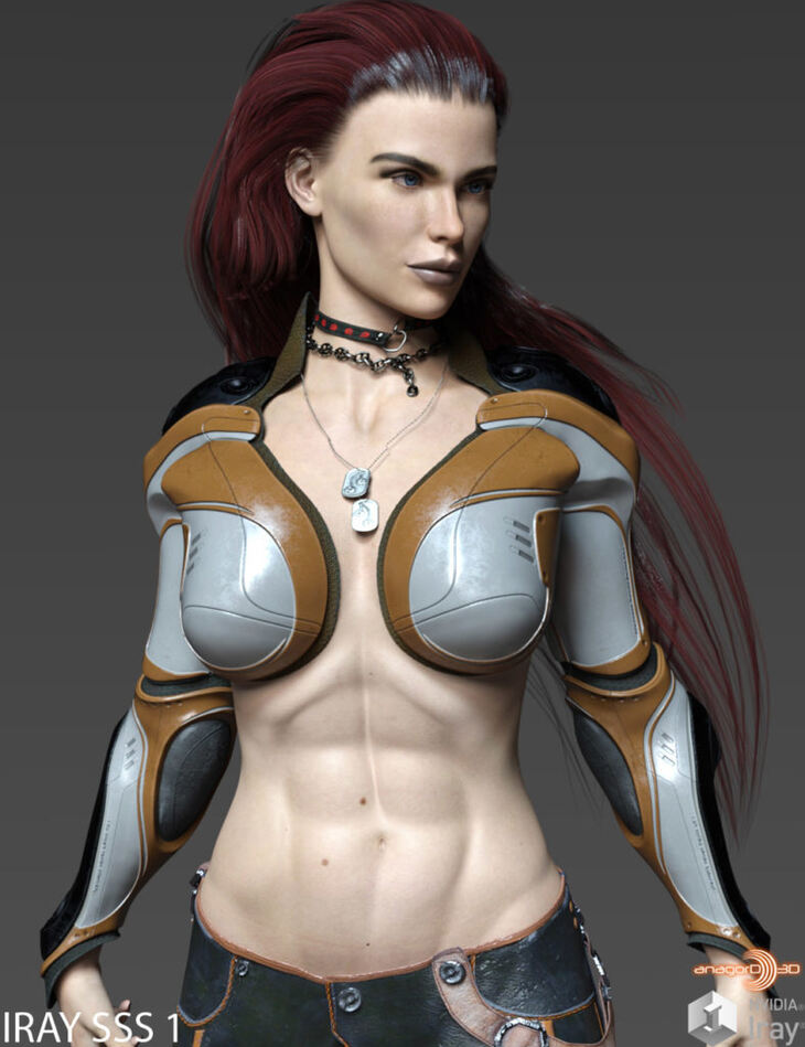 Character is custom sculpted in ZBrush with some help adjustment of Victoria 8 Head.