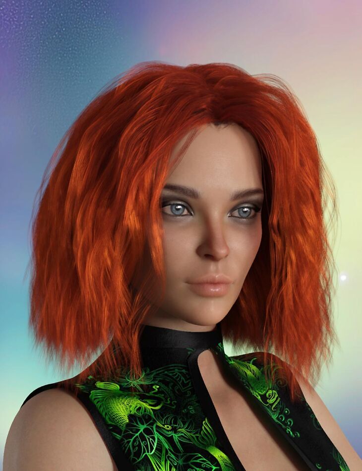 There are fits for some of Genesis 8 female and Genesis 9’s character shapes and it can also be made to fit more characters with the use of Auto Fit and the supplied Adjustment morphs. There are style and hair morphs to help create the look you want.