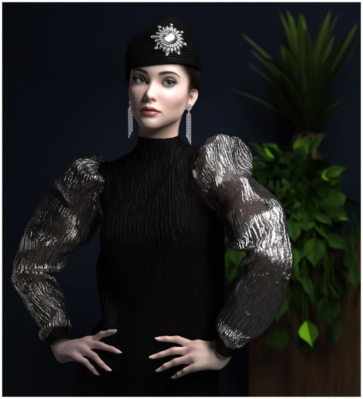 The set consists of a hat with a veil and a pair of earrings for LaFemme.