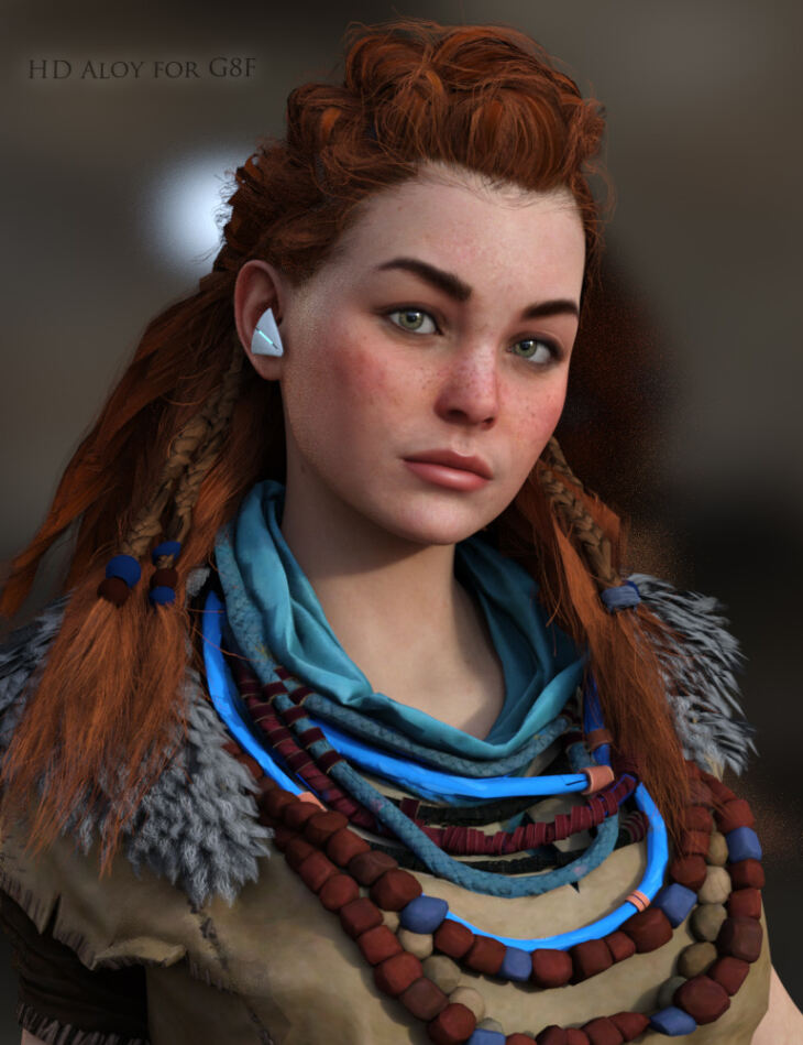 This set includes: Aloy head and body morph, Aloy Eyelashes, Outfit and hair.