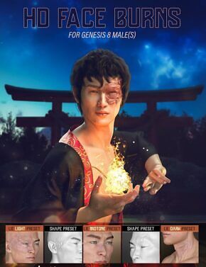 HD Body Burns for Genesis 8 and 8.1 Males is a collection of 13 body burn scars that cover the arms, shoulders, and neck, created through the careful combination of HD morphs, Geoshells, and LIE material presets for flesh texturing. In addition, we have included a mirror option of 12 of the scars for a total of 25 HD Morphs.