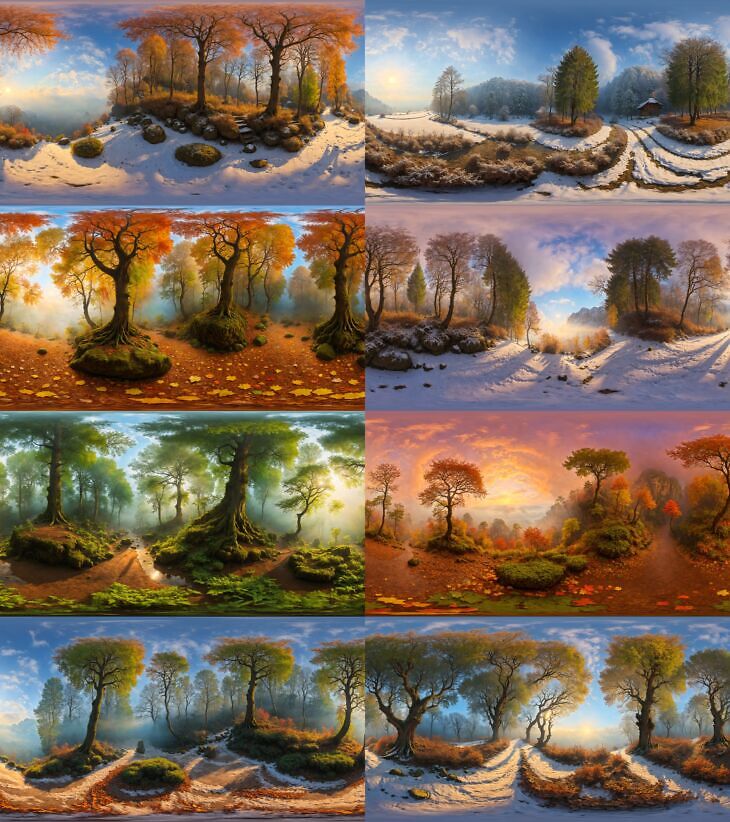 This pack contains 51 HDRIs (HDR, 360, 8k resolution textures 8192 x 4096, 32 BIT) designed to create Forest PANORAMAS (360 backgrounds).