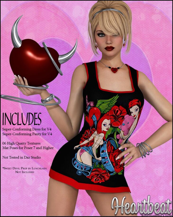 This set consists of 02 items for Victoria 4 - Dress & Panty. Included are MAT poses to apply 6 texture styles to all pieces.