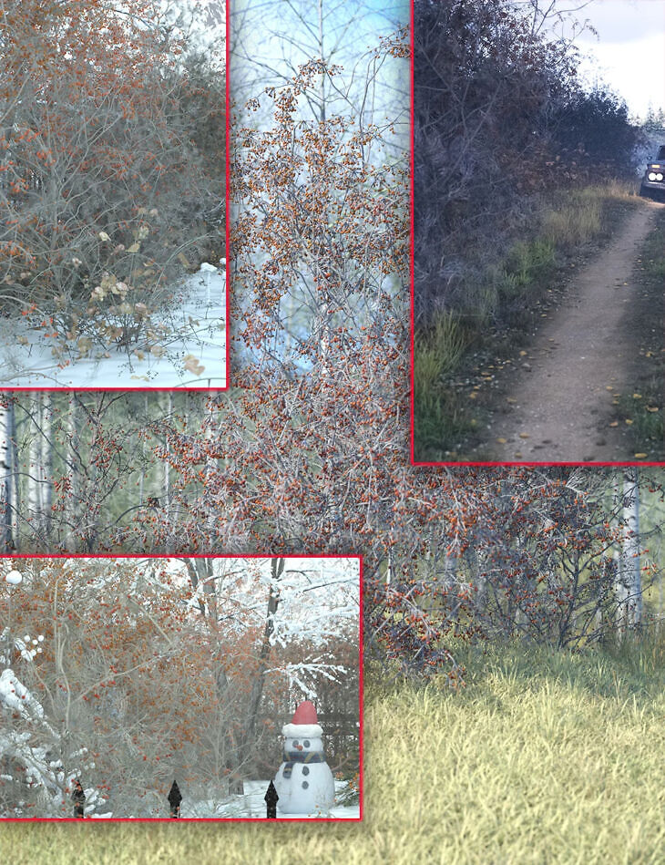 At Popular request here is a winter version of the Hawthorne Hedges Bundle in my Store, this is a standalone product, you dont need any other products to make it work, and you can use these frosty cool winter shrubs and small trees representing Hawthorne and bramble, with berries in different colors, the options of frosted twigs and foliage and even ready made hedge row sections that can simply be placed in your scenes and are good to go!