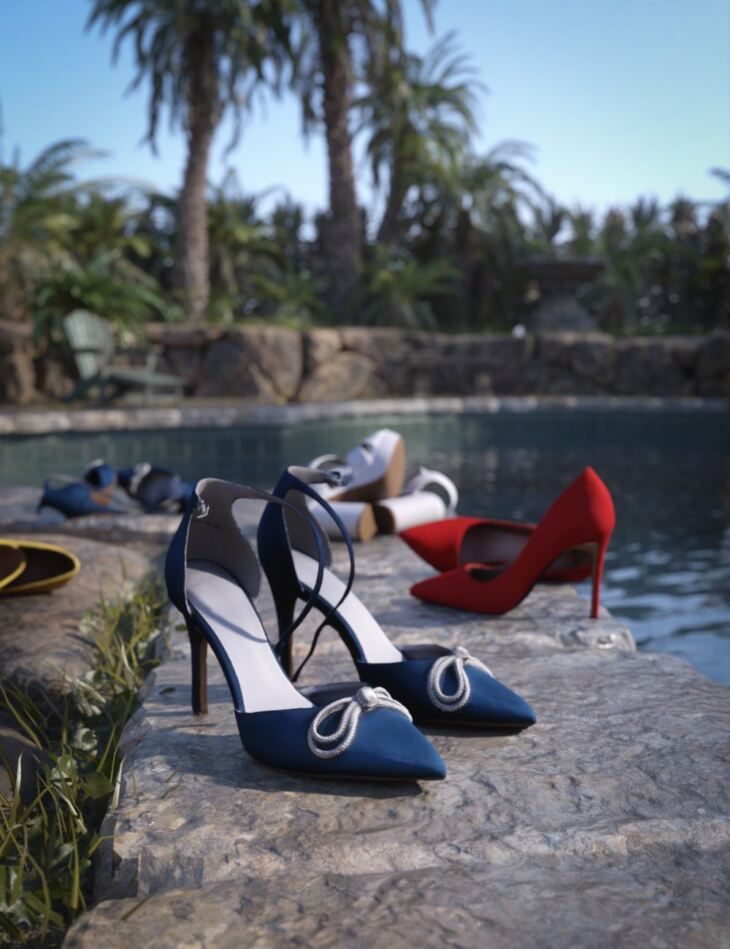 These gorgeous high-quality HD scans of heels lying down on the ground can be used on the floor, on a table, chair, bed, walk-in closet, in a car, or on the beach.