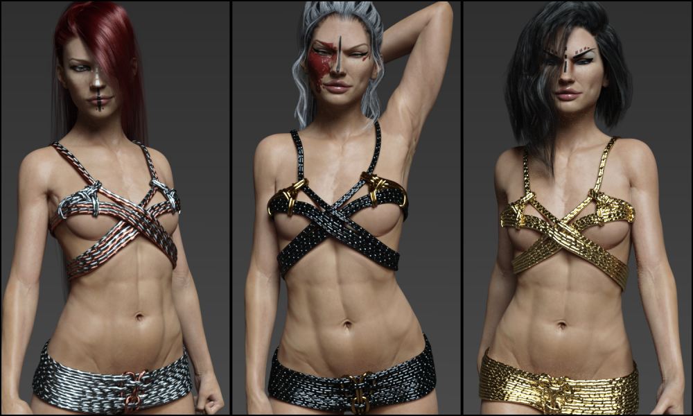 "HEROINE" is a companion texture set for Rope Art Outfit for G3F by Rpublishing & Rhiannon.