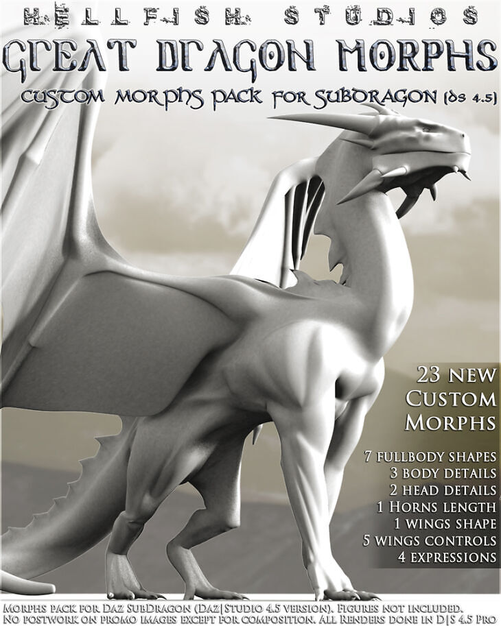 Each morph is carefully hand-sculpted in Zbrush and can be combined with other morphs in the package or with other subdragon morphs from other product!