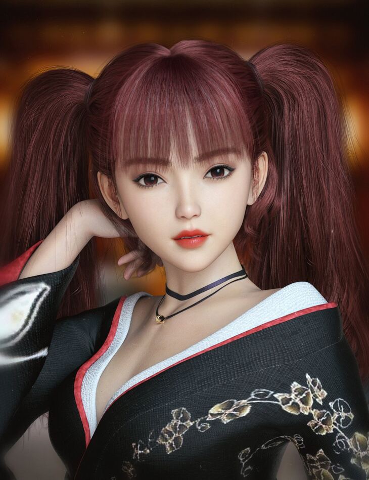 A unique double ponytail hair, Hina Hair for Genesis 9 has over 40 colors and over 40 morphs. There are 4 matching blows control morphs and 8 matching styles.