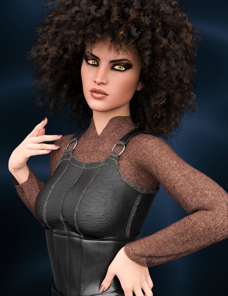 She's an extreme beauty, who can be a Warrior Queen, Spiritual Herbalist, or Dream Weaver in a high fantasy realm — or even a soft and supple, fashion-forward, stylish, and chic character in your modern scenes.
