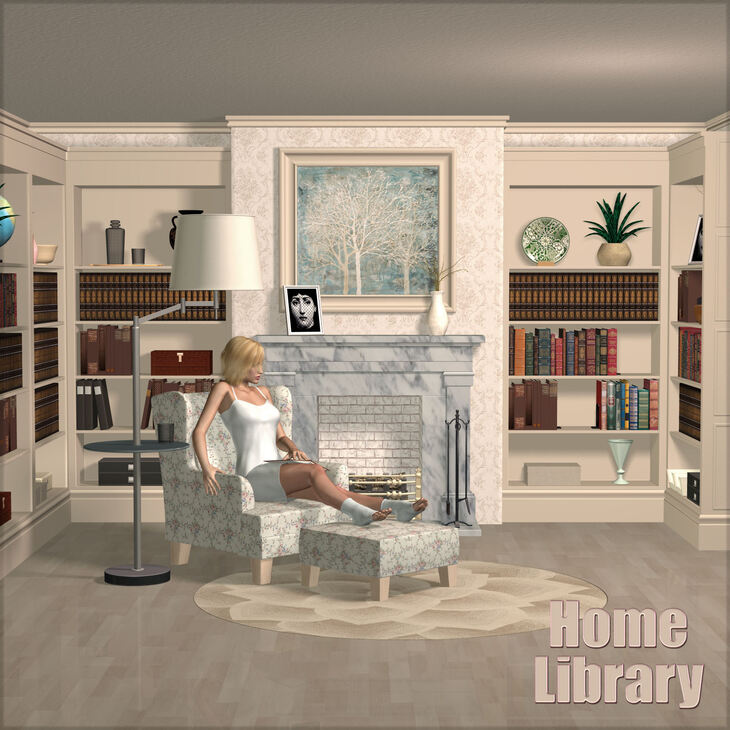 The Home Library is a large 36-piece props ensemble that replicates a bright, modern home library environment complete with all of the furniture and book accessory items you'll need to set up a charming home library scene.