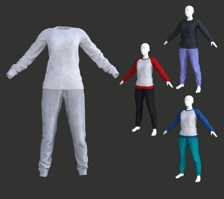 Just some nice and cozy sweatpants with the matching sweatshirt. Ideally for some at home renders.
