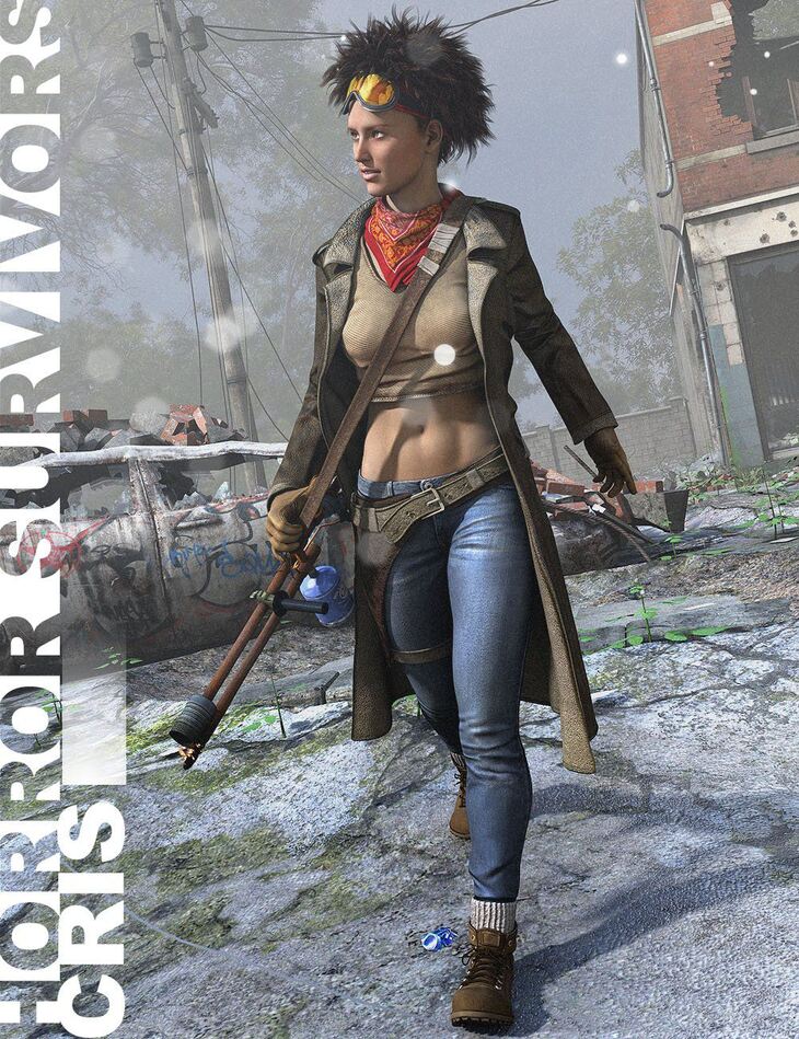 Horror Survivors: Cris for Victoria 6, a premiere 3D model, is a complete, fully textured clothing set and props for Genesis 2 Female(s) and Victoria 6.