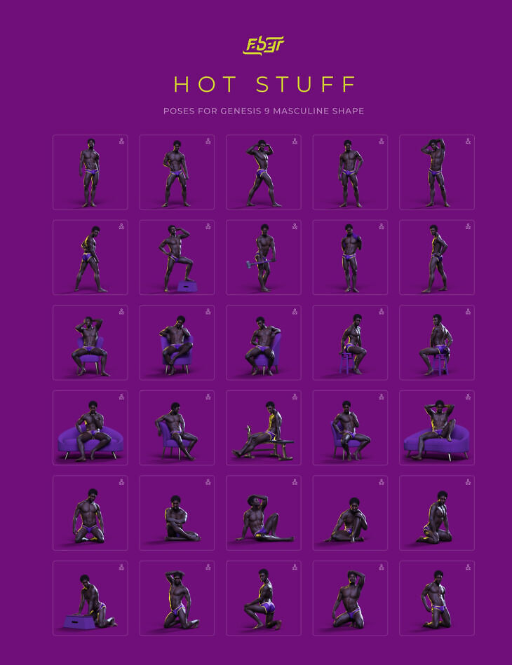Serving 30 poses of sexy, masculine pinup flair, this pack makes your Genesis 9 males look irresistible from the front—wait ’til you see him from every angle.