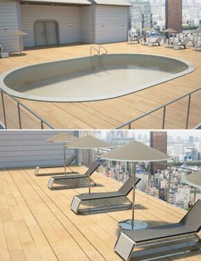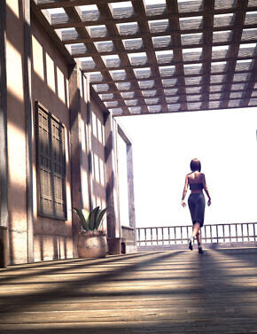 Hotel Balcony comes as a full scene Preset with two pose-able doors, chairs, tables, and plants. All props can also be loaded separately. Available with both Iray and 3Delight versions.