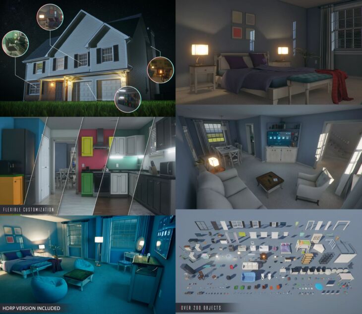 HQ Residential House is a fully interactive American-style house with the ability to walk inside, open doors, windows and closets. You can create a neighborhood with the endless variations of exterior, interior and furniture colors.