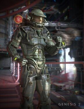 Hunter Gear includes a complete armor set with weapons for Genesis 3 Male(s).