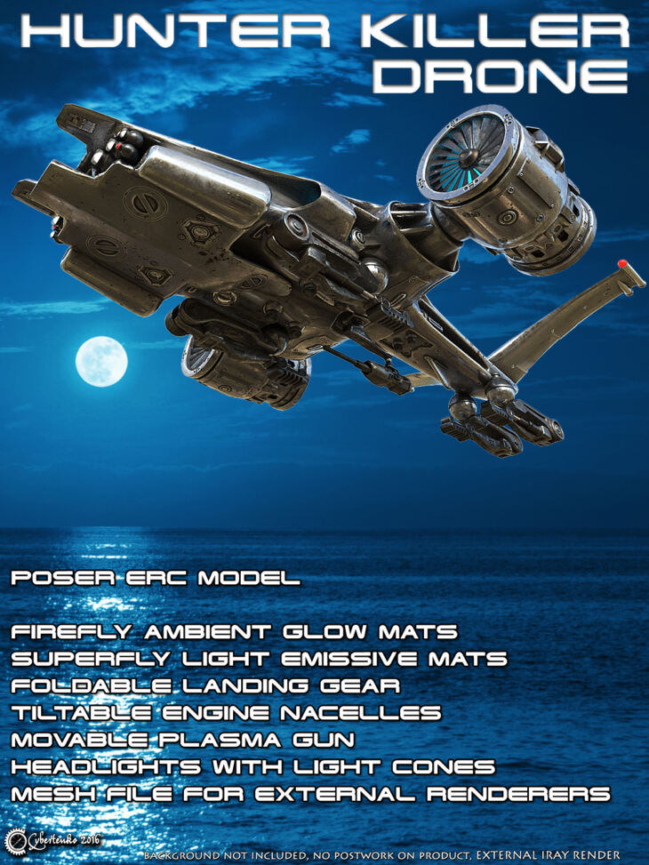Autonomous flying machine designed and produced by sinister AI to search for remnants of human resistance and their disposal. Excels in speed and agility, but is rather weakly armed with automatic phased pulse cannon on a movable arm.