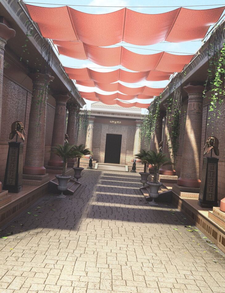 Hypostyle Hallway is a complete, enclosed Egyptian style environment for Iray and 3Delight with included Palm, Cat Statue and Death Mask props to customize according to your needs.
