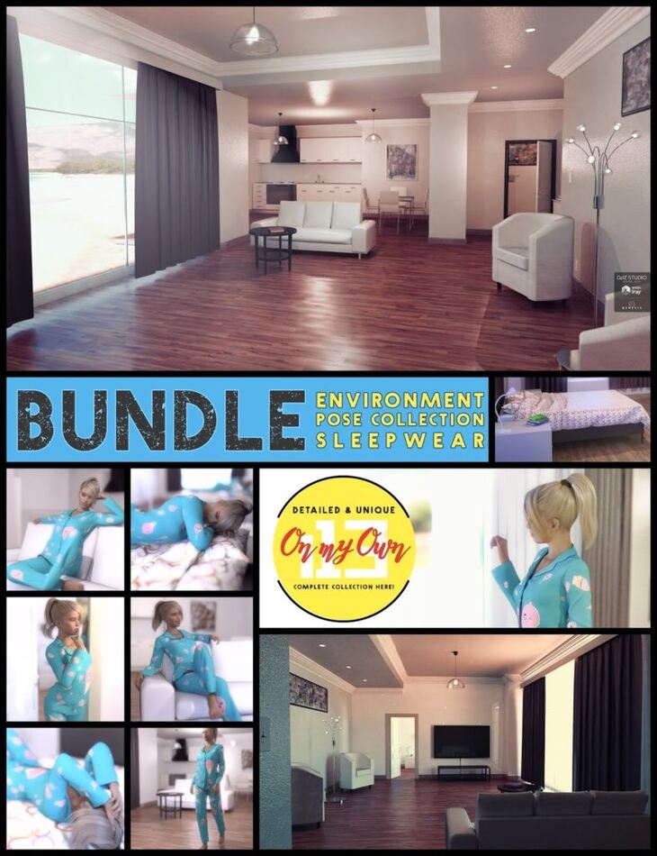 This bundle contains the On My Own Environment, Poses, and Sleepwear!