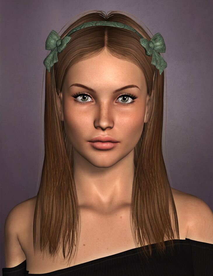 Ibby hair is a feminine, soft hairstlye for all girlys. It comes with two bow´s and a hairband. Bows can be hidden separate and scaled in size. The hair comes with five realistic haircolors and five nice band and bow colors. Plenty of morphs included.