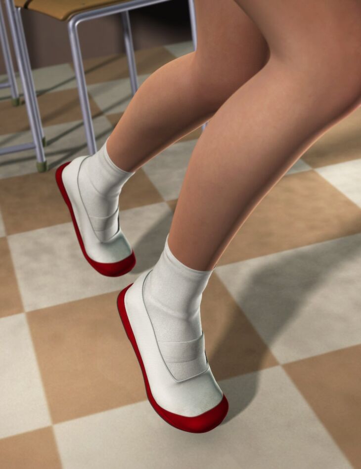 School indoor shoes combined with socks for Genesis 2 Females. Two color options for shoes, three color options for socks.
