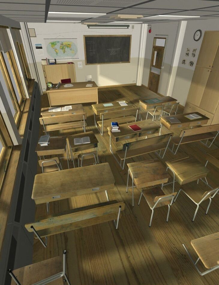 There are plenty of props to fill your scene - 51 of them - from blackboard and school desks to paper, notebooks and pens, all with high-quality textures. The room has 6 opening windows with morphing window-blinds, emissive ceiling lights (Iray only), and walls, floor and ceiling can be switched off/on for easy camera access.
