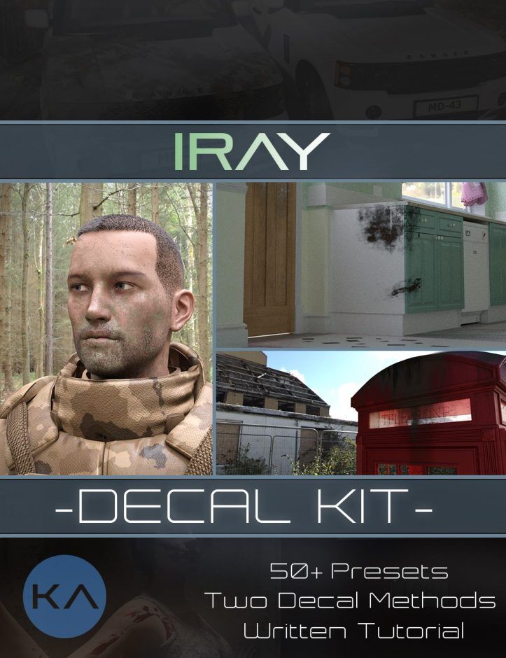 Iray Decal Kit contains a suite of over 50 presets for not only irays built-in projected decal system, but also a simple plane-based system for flat surfaces.