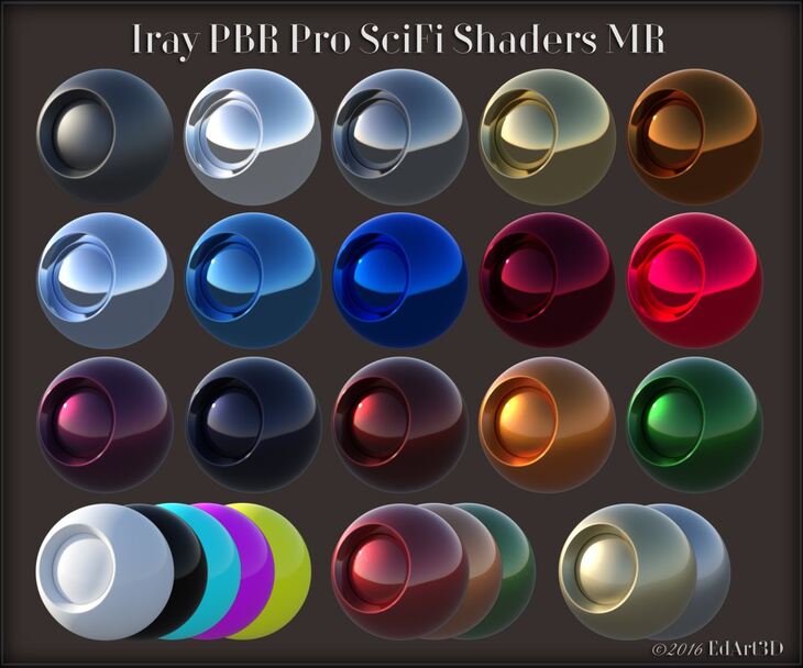 Set with 30 Iray PBR Pro SciFi Shaders. PBR (Physically Based Rendering) refers to the concept of using realistic shading/lighting models along with measured surface values to accurately represent real-world materials.