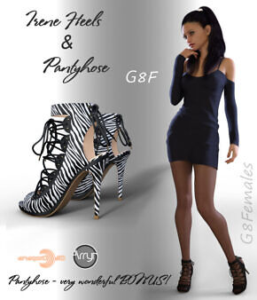 "Irene Heels and Pantyhose G3F" is a new 3D models (figures) of High Heels and pantyhose for G3 Females. Another valuable addition to your collection.