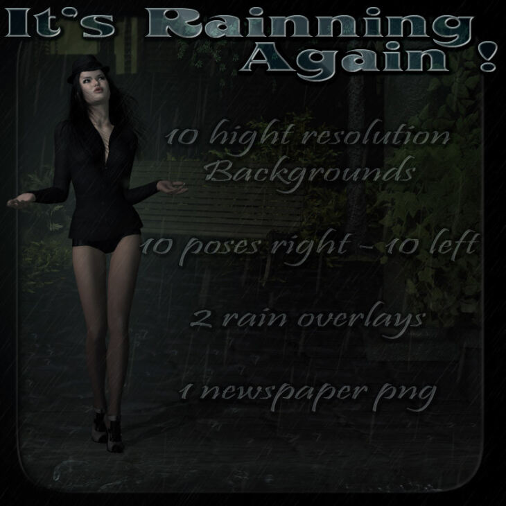 Includes 10 high resolution backgrounds, 2 rain overlays, 1 newspaper png, and 20 poses for V4.