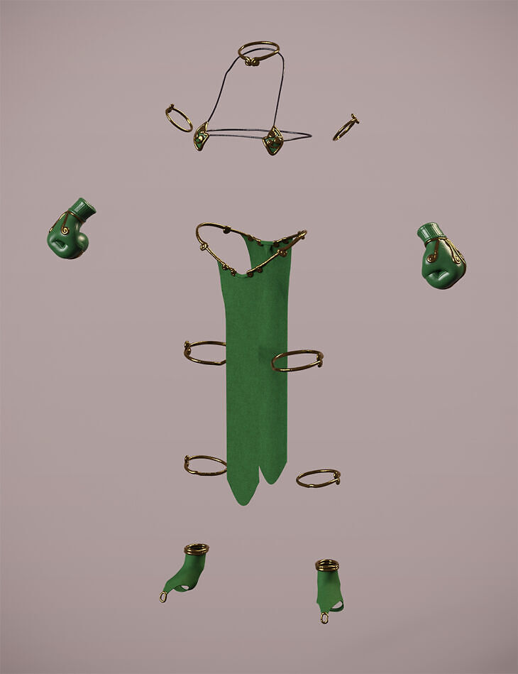 - Bra - includes a "Cleavage" bone to help adjust breast tension between the breasts