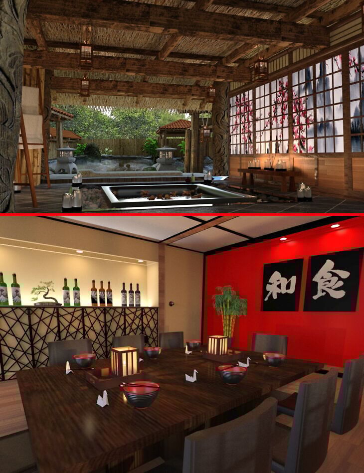 A bundle of Japanese Restaurant, Japanese Spa and Japanese Hot Spring.