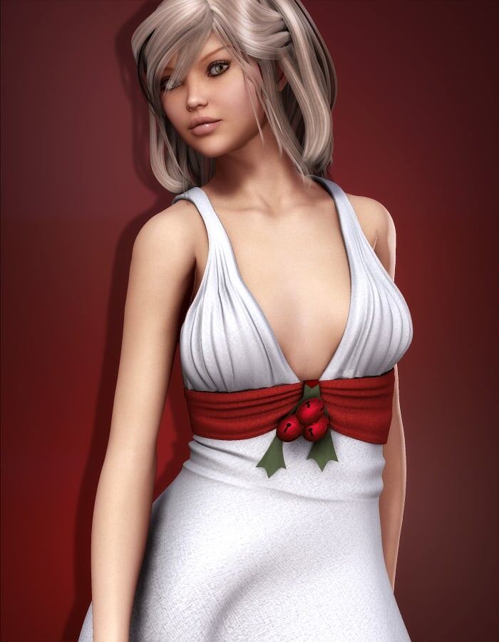 Jingle all the way in the Jingle Bell Dress for Vicky 4. This shimmery white dress has a holly-shaped bell arrangement, and is perfect for Christmas parties. The dress also contains all applicable CrossDresser adjustment morphs for easy posing.