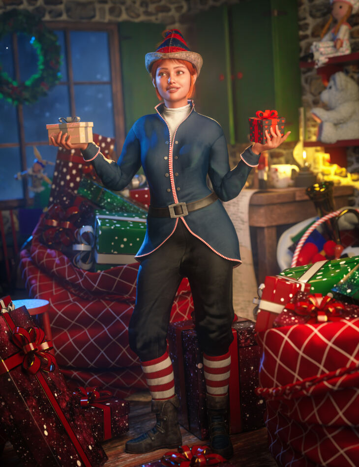 The Jingle Outfit for Genesis 9 was created with fine details to create realistic scenes with your favorite Genesis 9 characters.