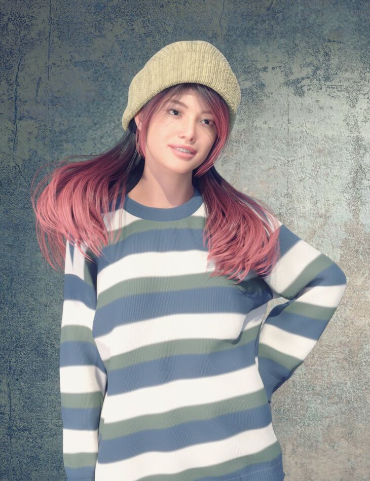 Alice Hair for Genesis 9 Female is a long haircut, And it includes 2 types of hats - a Fishman's hat and a Wool hat it, you can choose the hat you like for your character.