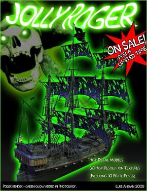 Included in this multi-part set is the boat itself, a set of oars, a single oar prop, sacks, ropes and the water plane as used in the promos. A preload has been included to also load the boat complete.