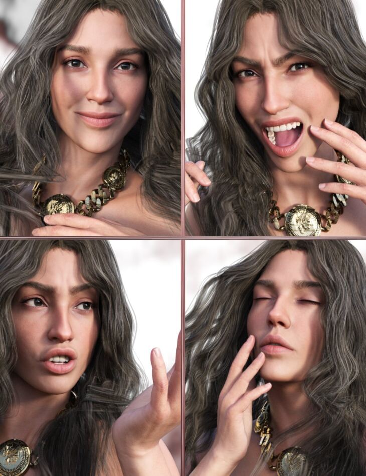 JW Brave Woman Expressions for Olympia 9 contains detailed and versatile facial expressions to use in a variety of scenes for your characters.