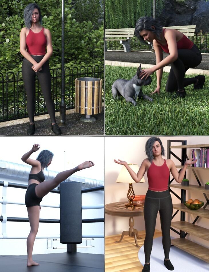 Due to the great variety of poses included in this pack, you will be ready to set your characters in any scene, either in a park, a mountain, at home, or even a pool or lake.