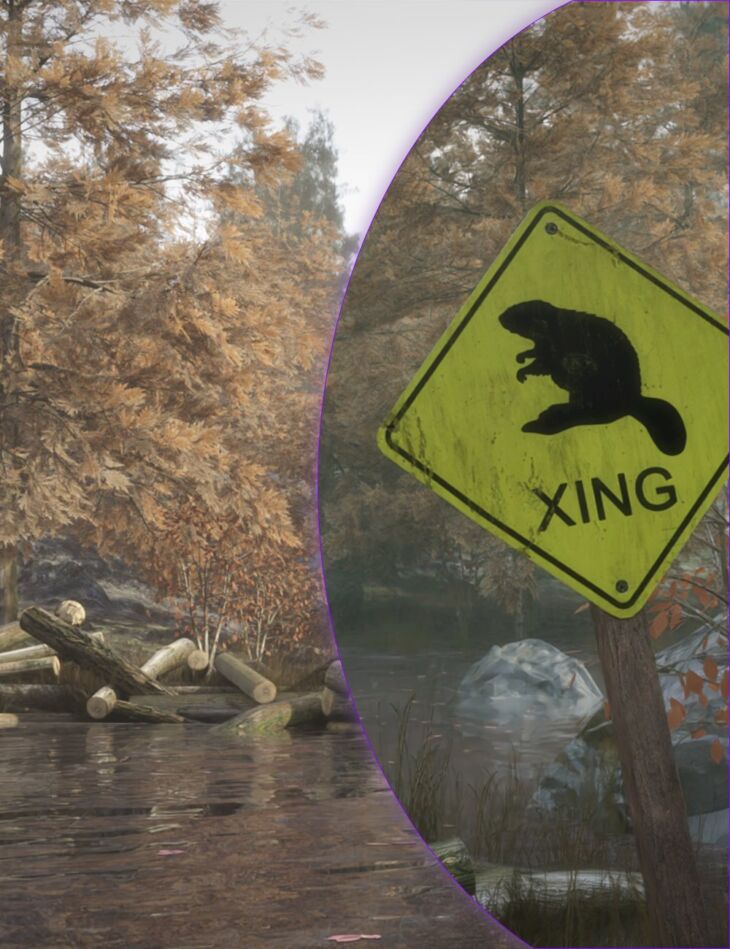 This set contains a large, open, rural terrain with a long river flowing through the landscape. The centre of the river is obstructed by a Dam made of logs and twigs, laboriously designed and constructed by local beavers. The environment is enclosed by high edge terrain, and a high resolution 2d backdrop.