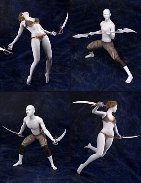 A highly detailed dark fantasy armor set for Genesis 3 Female(s). Includes wearable 1 and 2 Handed swords and 7 hierarchical poses to get you started.