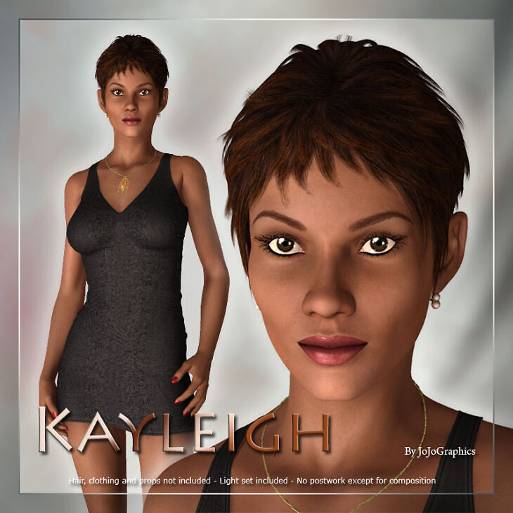 Meet Kayleigh! A digital actress playing every role you like. You can present her as an elegant beauty, as superheroe, as dangerous and mysterious vamp or simply as natural exotic beauty.