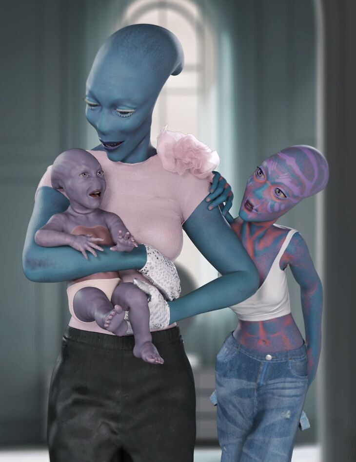 Introducing Kliane, a celestial wanderer with luminous silver skin and eyes that hold the weight of galaxies. With her two children by her side, she traverses the cosmos, carrying the wisdom and legacy of a forgotten civilization. As the last living bridge to a race yet to rise, she safeguards ancient knowledge, ensuring the future inherits the echoes of the past.