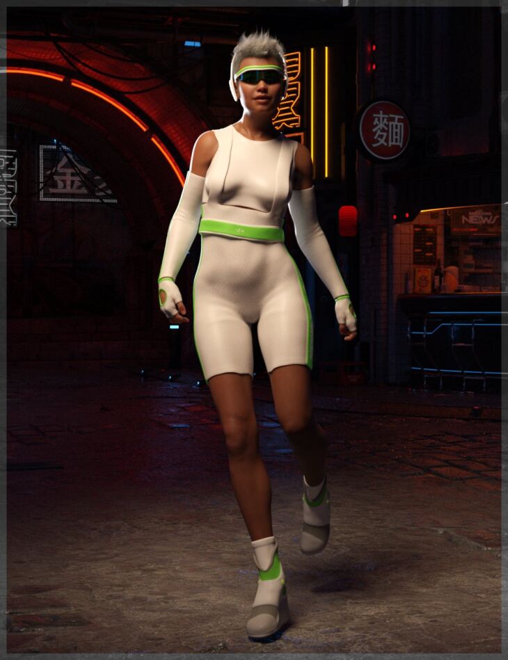 The KrystinM Outfit for Genesis 8.1 Females is urban sportswear. If you create contemporary, urban, or sport renderings, this outfit is perfect.