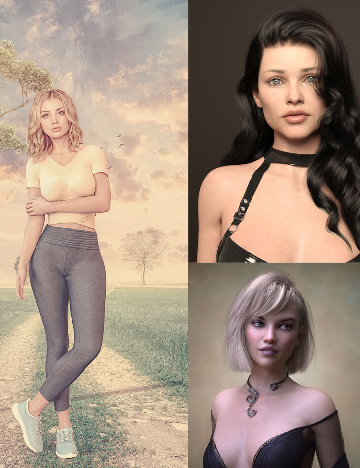 Create effortlessly stunning characters with the Kui Joy Bundle. It comes with the beautiful Kui for Genesis 8.1 Female, dForce Joy Hair for Genesis 8 Female, and Cute and Simple Outfit for Genesis 8.1 Female.