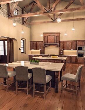 Lavish and lovingly decorated, the Lencino Living Space features a high ceiling, is surrounded by archways, and is lined with French doors.