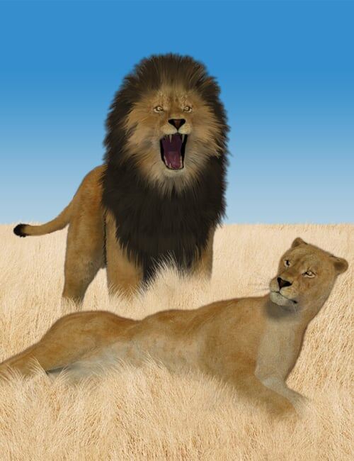 'Lions by AM' is a Poser/DAZ compliant 3D model reproducing both Panthera Leo genders.