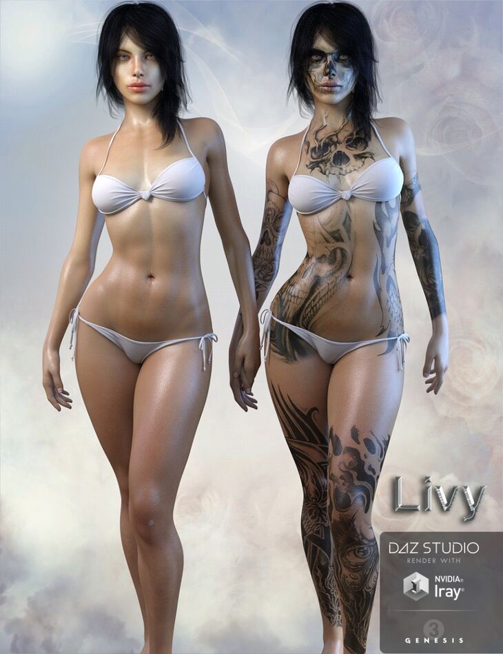 Livy is a beautiful character with two distinct personalities. One a very nice girl, the other one, a gothic girls, with some dark feelings. Both can be used in any kind of your images with versatility and very pretty results.
