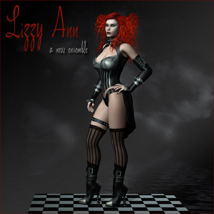 Lizzy Ann is a new ensemble for Victoria 4 or Aiko 4, with lots of attitude and bad girl sex appeal. With the spikes, metal and leather, this is one outfit you have to have in your collection.